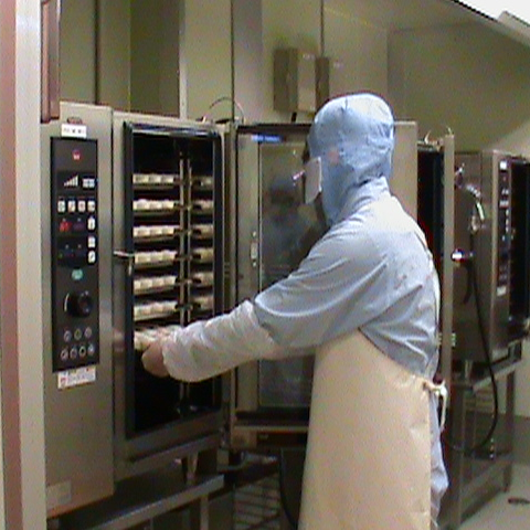 スチームコンベクションで製品の加熱を行います。蒸し工程と焼き工程の両方が可能です。